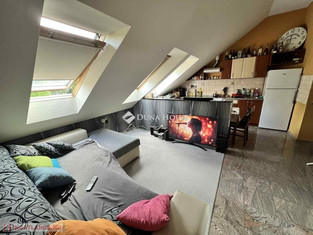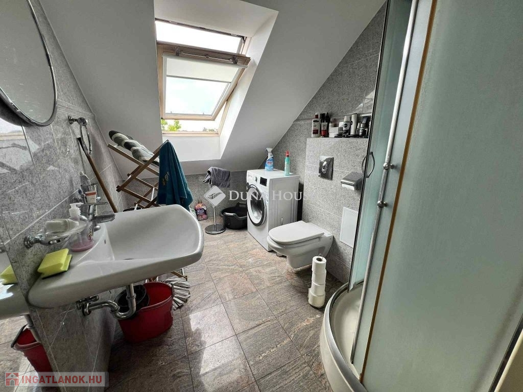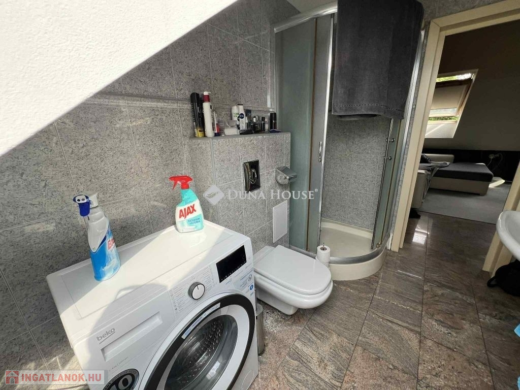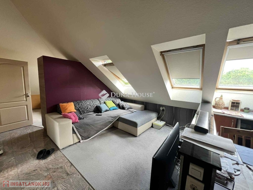 Eladó egy tetőtéri lakás egy 2017-ben épült, modern társasházban. A lakás az épület csendes, udvar felőli részén található, a társasház mindössze két szintes, így kevés a szomszéd és nyugodt a környezet.