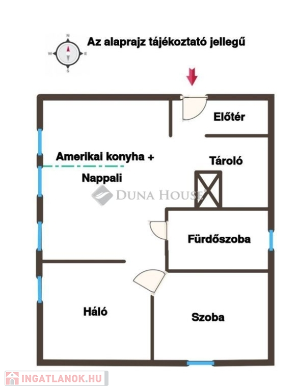A kis tulajdoni lap szerinti alapterülete 29 m2, azonban a teljes/bruttó alapterülete 56m2.