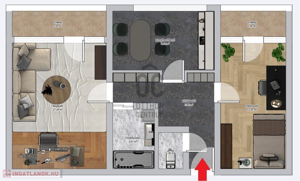 - A nettó 53 m2-es lakás, 2 erkélyes.