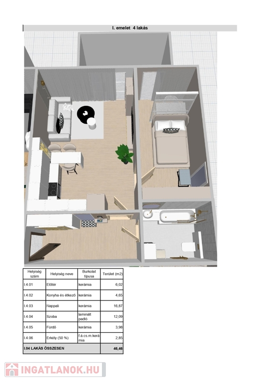2. em. 43,61 nm (5,7 nm erkély) N+1 szoba Ár: 46,46 M Ft