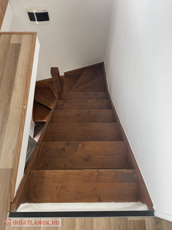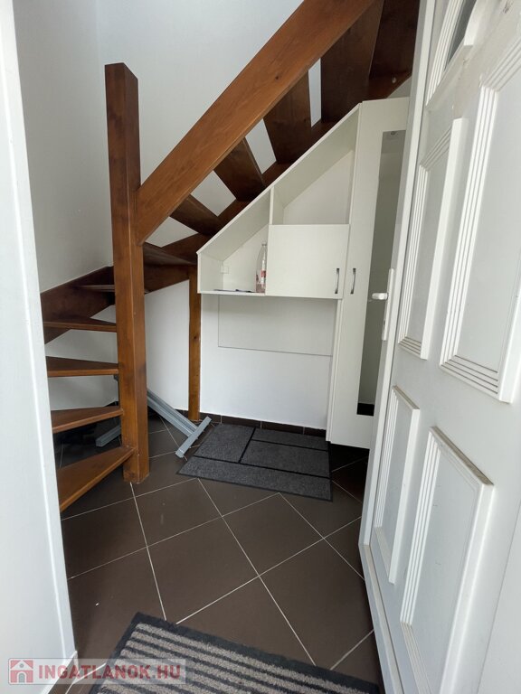 Az udvar szinten lévő bejáratból az előszobába jutunk (bútor és bringa tárolásra kialakított), ahonnan belső lépcső vezet az emeleti nappaliba.