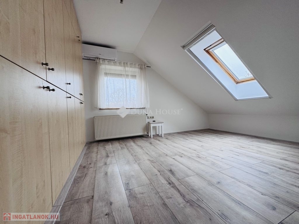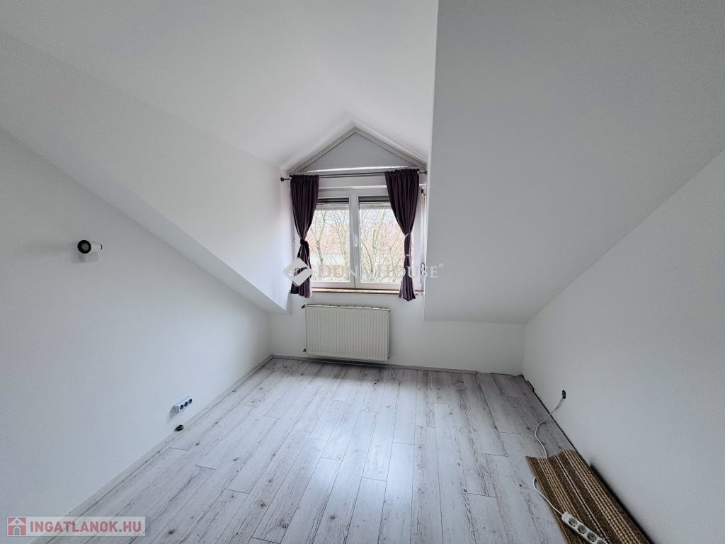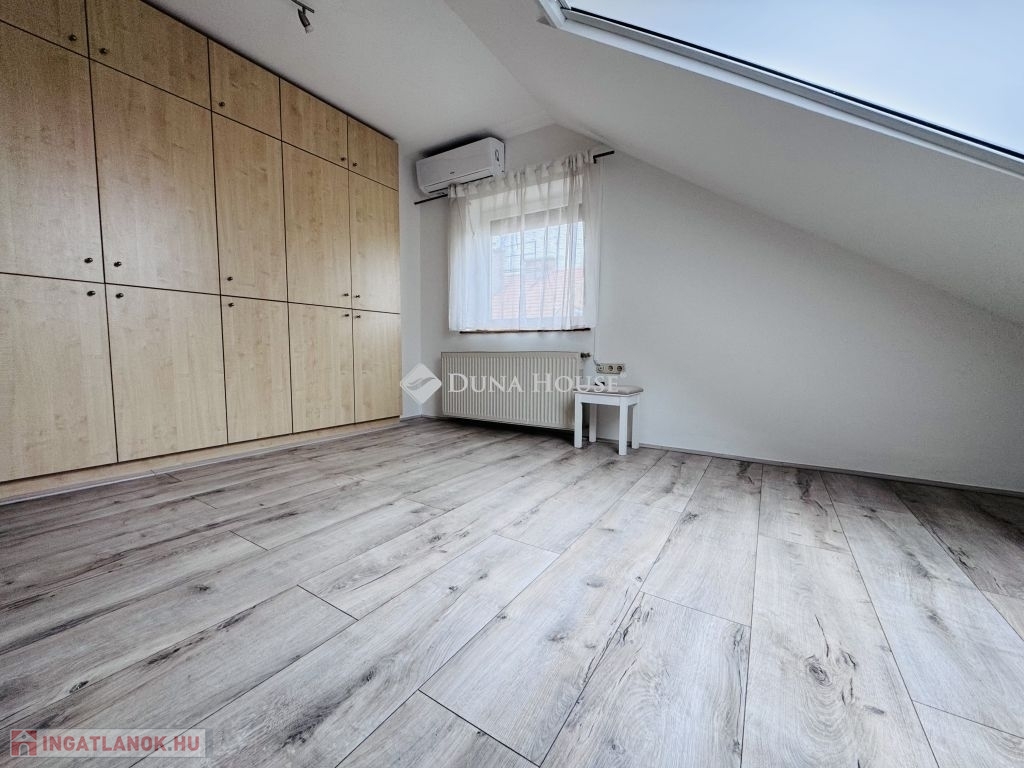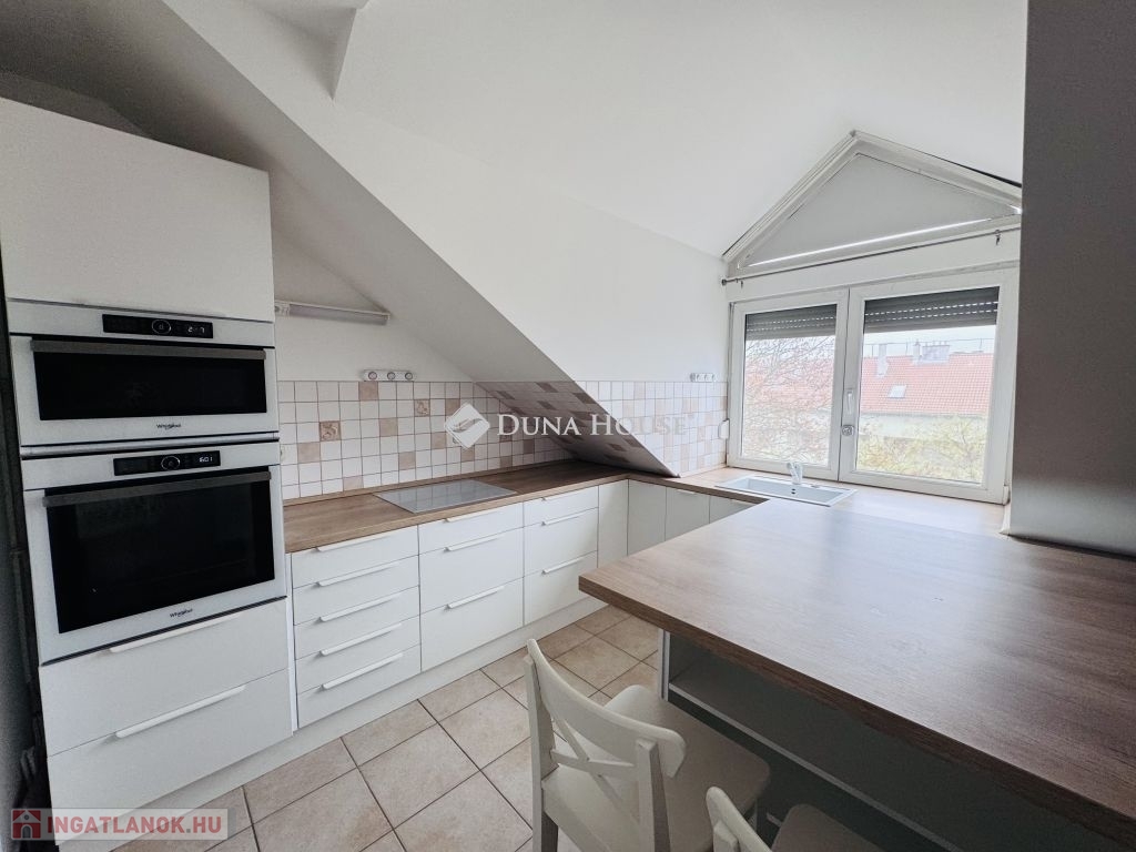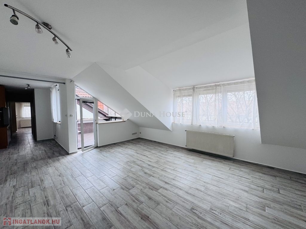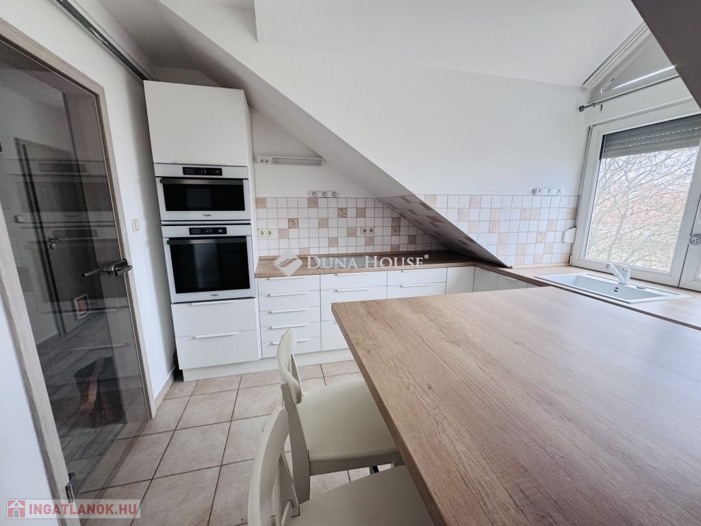 Eladó tetőtéri lakás Pécs közkedvelt Uránváros városrészében!Pécs egyik legkedveltebb, zöldövezeti részén, Uránvárosban eladóvá vált egy 1990-ben épült, kiváló állapotú, egyedi gázfűtéses tetőtéri lakás. Az ingatlan elrendezése és tágas tereinek köszönhetően ideális választás akár családok számára is.A lakás nettó alapterülete jól átgondolt elrendezésű:két különnyíló hálószoba,egy tágas, világos nappali,külön konyha és étkező,fürdőszoba és külön WC,kamra,dolgozósarok a gardrób részeként.A lakáshoz tartozik egy kb. 15 m²-es nagyméretű terasz, amely kiváló helyszínt biztosít pihenésre vagy baráti összejövetelekre.A lakás fenntartási költsége rendkívül kedvező, a fűtést és meleg vizet egyedi gázkazán biztosítja.A minőségi konyhabútor és beépített konyhai gépek a vételár részét képezik, ahogy a jelenlegi bútorzat is megegyezés tárgyát képezi.Az ingatlanhoz saját tároló is tartozik, a ház pedig rendezett, zöldövezeti környezetben található, jó szomszédsággal és kiváló infrastruktúrával: boltok, iskola, óvoda, buszmegálló néhány perces sétával elérhető.