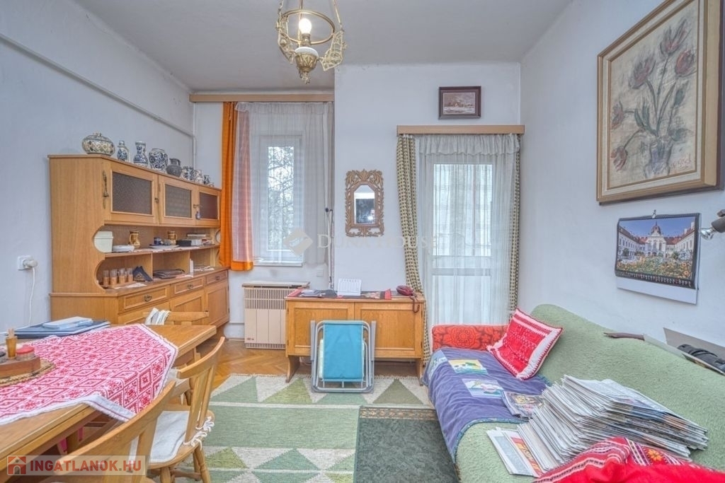 PÉCS, KÖZTÁRSASÁG TÉR.Pécs egyik legkedveltebb környékén a Köztársaság téren eladó egy 92 nm-es 4 szobás, erkélyes, magasföldszinti lakás.Az ingatlan rövid határidőn belül birtokba vehető, tehermentes, jelenleg nem lakják.Tökéletesen alkalmas irodának akár rendelőnek is.Nagy park, sok zöldterület, nyugodt életritmus, élhető környezet s a belváros közelsége jellemzi ezt a területet. A lakás magasföldszinten található, déli tájolású, aminek következtében nagyon kellemes, napfényesek a szobák. Az épület falai igen vastagok, erősek, s nagyon jól tartják a hőt, ezért kedvező a lakás energiagazdálkodása: télen az átlagosnál kevesebbet kell költeni fűtésre, nyáron pedig nincs szükség mesterséges, drága hűtésre.Kiemelném a lakás felújítandó állapotú, viszont a nyílászárók műanyag típusúak, redőnnyel felszereltek.Elosztását tekintve tágas előszobából jutunk a közlekedőbe, balra nyílik a 25 nm es nappali, jobbra, wc, fürdőszoba, konyha és étkező lett kialakítva.Az étkező erkély kapcsolatos, akár a konyhával összenyitható, ezenkívül még két lakószoba várja új tulajdonosait.A családi otthon felújítás után minden generáció együttélésére alkalmas, az ingatlan kiadhatósága garantált.A lakáshoz saját pince rész is tartozik, ha valakinek fontos a garázs a lakás közelében van egy eladó garázs, mely külön megegyezés tárgyát képezi.A fűtés konvektoros a melegvíz ellátást villanybojler biztosítja.Az utca csendes, nyugodt, a lakóközösség igényes.Közvetlen közelében található park, játszótér, kisbolt, gyógyszertár, buszmegálló, iskola, az Árkád 5 perc alatt, több egyetemi kar is 10-12 perc alatt gyalog elérhető.Ajánlatom megfelelne az elvárásainak, de nem rendelkezik a kiválasztott ingatlan vételárával?A Credipass hitelügyintéző munkatársai díjmentesen biztosítják a legkedvezőbb, személyre szabott hitelkonstrukciót a kedves vevők számára.Ha felkeltettem érdeklődését, további kérdései lennének az ingatlannal kapcsolatban, megtekintené, várom megtisztelő hívását, akár hétvégén is!