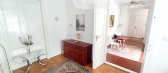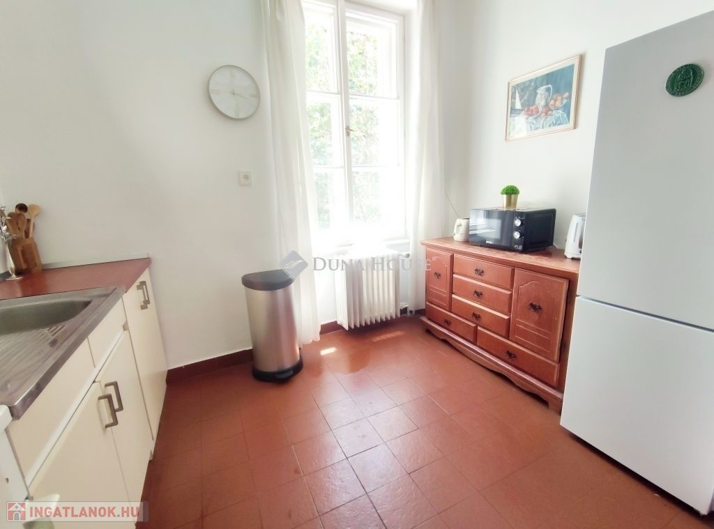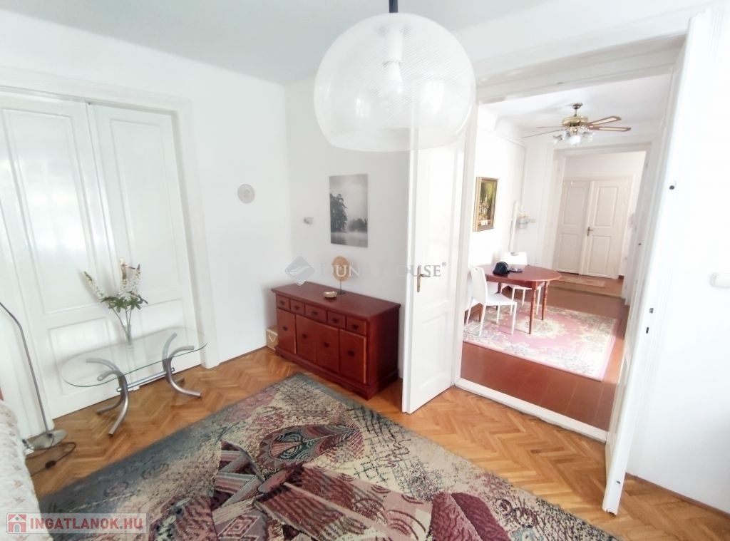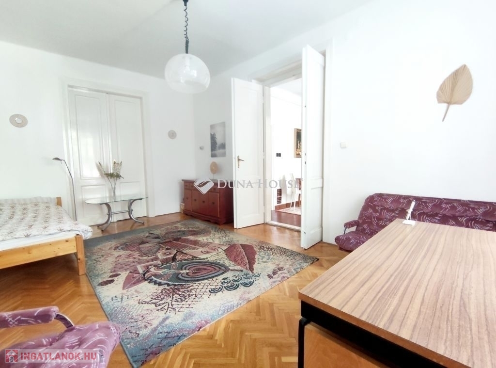 Pécs belvárosának szívében, a Király utcában első emeleti, elegáns, 108 nm alapterületű lakás eladó!A négylakásos társasház legnagyobb lakása a színháztól nem messze, a Kazinczy és Lyceum utca között található. Déli tájolású ablakai fás-parkos, nyugodt társasházi belső udvarra nyílnak, utcafronti szobái akár tovább bonthatóak, igy könnyen nappali-konyha-étkező és 3 külön bejáratú szobássá alakítható! A társasházi közös kertből saját használatú kertrésszel rendelkezik. A lakás jó állapotú és elosztású, 3 tágas szobával, és étkező-konyhával. Helyiségei körben 6 nagy, jó kilátású ablakkal rendelkeznek. Étkezővel egybenyitott konyha, nagy gardróbszoba, kamrahelyiség, külön fürdőszoba és WC, saját használatú előtér találhatóak benne. A gardrób beépített kétszintes ruhaállványzattal, a fürdőszoba káddal, az előszoba kétszárnyú beépített szekrénnyel felszereltek. A lakás nemrég festett és mázolt. Alacsony rezsiköltségű, radiátoros központi fűtéses Bosch gázkazánnal. A magánhasználatú, szintén udvari kilátású feljáró-előtér mellett saját, tágas alagsori tárolóhelyiséggel is rendelkezik. Tetőtérbeépítés és a lakás irodai átalakítása is lehetségesek. Klasszikus stílusú bútorai megegyezés tárgya lehetnek. Tehermentes, nem lakott, gyorsan birtokba vehető! Tágas polgári otthonnak, kényelmes irodának vagy a tetőtér beépítésével remek befektetésnek? Bármely célból gondolja, várom érdeklődő hívását!