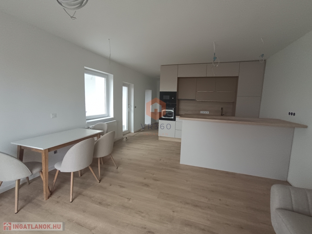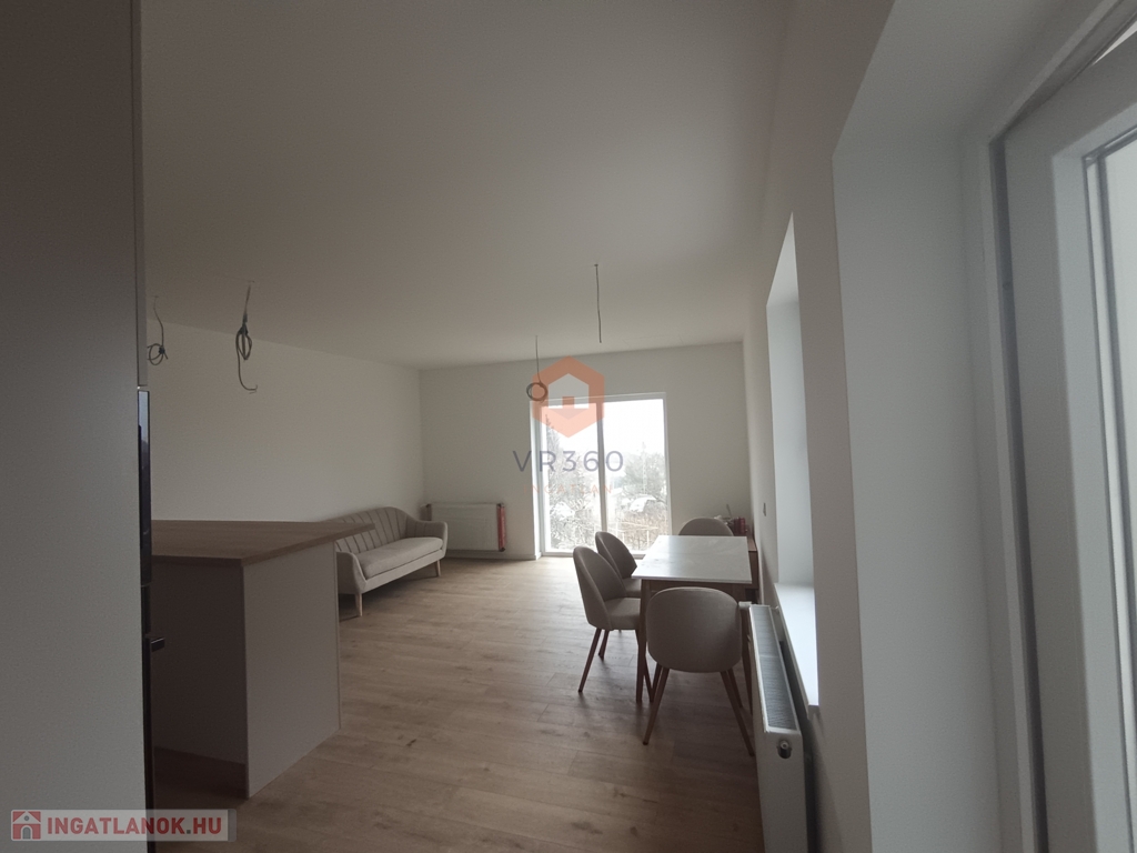 világos, amerikai konyhás nappali, ahonnan gyönyörű panorámás kilátás nyílik