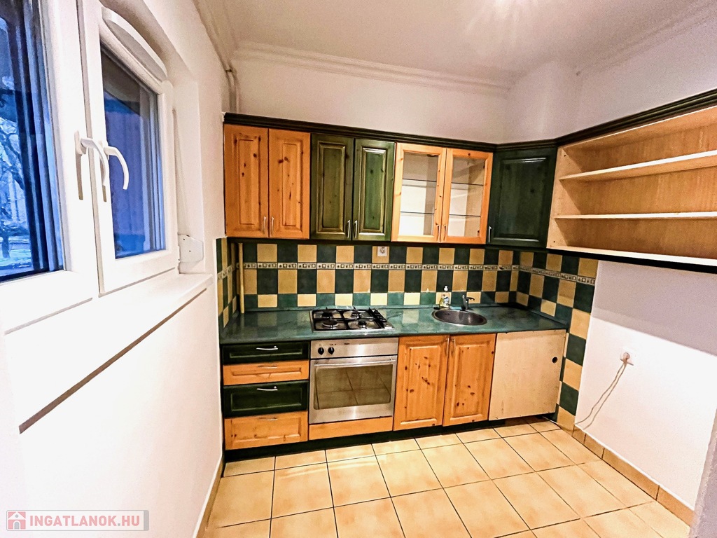 Az ingatlan földszinten található, elrendezése kiváló: 2 külön nyíló szoba, konyha, külön fürdő és WC, előszobában beépített szekrények, és egy tároló helység.