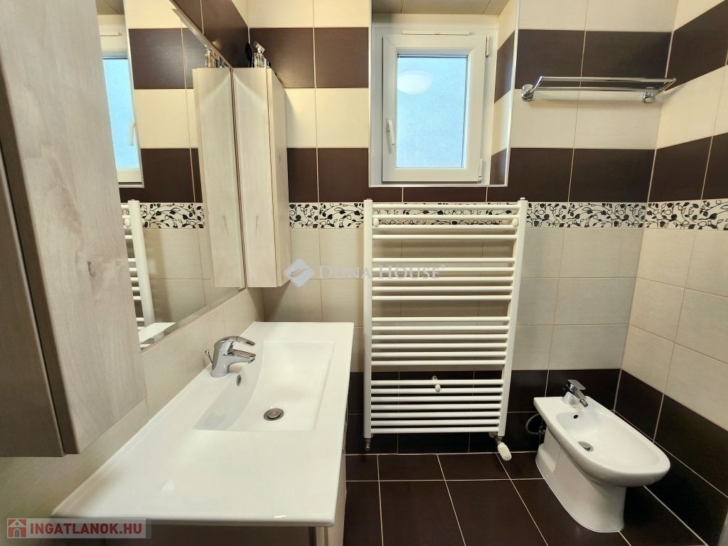 Eladó Pécs egyik legnépszerűbb részén, a Liget lakóparkban (Vadász utca) egy jó adottságokkal rendelkező, 2. emeleti, dupla teraszos lakás!Elhelyezkedés: A környék csendes, zöldövezeti, mégis jól megközelíthető.A közelben boltok, iskola, óvoda, tömegközlekedés is könnyen elérhető.A zárt lakópark területén, egy játszótér is található.Az ingatlan jellemzői:2008-ban épült, szigetelt tégla társasház 2. emeletén található.2022-ben teljes körűen felújították.Helyiségek: előtér, 2 szoba, amerikai konyhás nappali, fürdőszoba, wc, dupla terasz (fedett) melyről gyönyörű panoráma tárul elénk a Tv toronyra.Felszereltség:A minőségi gépek (bosch), tömörfa bútorok, a lakásban maradnak.Házközponti fűtés, a nappaliban egy hűtő-fűtő klíma is megtalálható.A lakás nyílászárói szigetelt műanyagok, redőnnyel és szúnyoghálóval ellátva.Az ingatlan rezsi költsége nagyon kedvező.1 db saját, felszíni parkolóhely.(3Mft)Igény szerint vásárolható hozzá egy garázs is!!