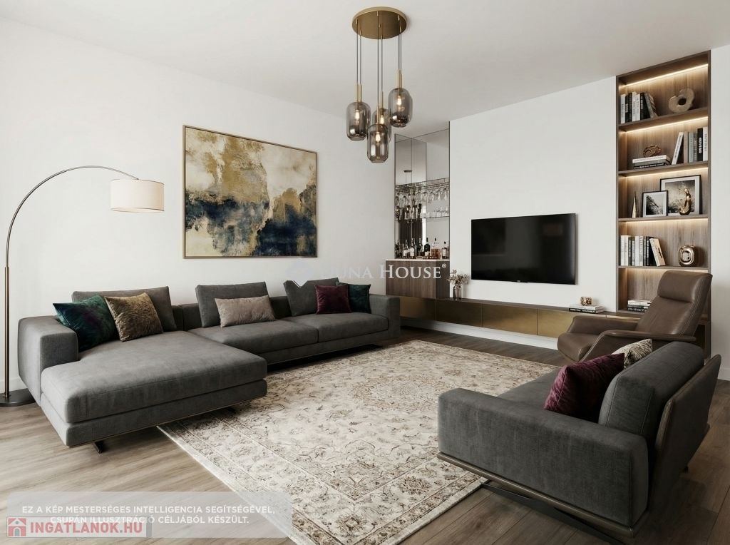 Eladásra kínálunk egy egyszintes, 130m2-es , tégla szerkezetű, kertkapcsolatos lakást, amely nem csak egy lakóhely, hanem egy otthon, ahol az élet minden szépsége kiteljesedhet. A ház 1 nappalival és további 4 szobával rendelkezik, amelyek tágasak és világosak, köszönhetően a jól megtervezett elrendezésnek.Az ingatlan a kertkapcsolatnak köszönhetően különleges lehetőséget kínál a szabadtéri tevékenységekhez. A kert gondosan ápolt, tökéletes hely a kikapcsolódáshoz, a gyerekek játékára vagy akár egy családi barbecue est szervezésére.Belépve a tágas előszobába, azonnal érezhető a nyugodt, családias hangulat, amit a természetes fény és a modern, mégis időtálló belső kialakítás is erősít. A nappali a központi helyiség, ahol a család és a barátok összegyűlnek, hogy kellemes időt töltsenek együtt. A konyha és az étkező egy légtérben helyezkedik el, ideális helyszín a közös főzésekhez és étkezésekhez.