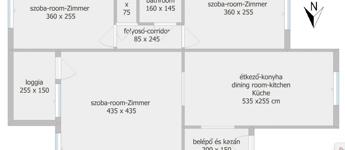Mérete 60 nm, a szobákon felül étkezős konyha is van a lakásban.