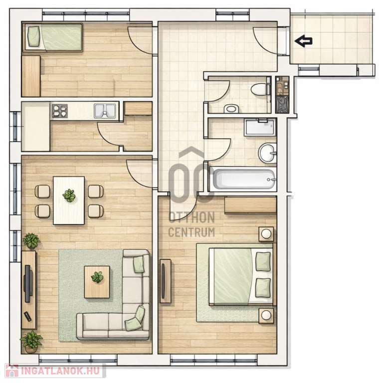 Belváros közelében, rendezett, négyszintes társasház harmadik emeletén kínálunk megvételre egy 63 m²-es, amerikai konyhás nappali + 2 hálószobás, délkeleti tájolású, egyedi cirkófűtéses, kedvező fenntartású téglalakást.