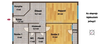 68 négyzetméteren kapott helyet 2 hálószoba, nappali, étkező, konyha, külön fürdőszoba és wc. Az elrendezés a mai kor követelményeinek megfelel, a lakótér és a vendégek fogadására kiválóan alkalmas nappali/étkező elkülönül egymástól.