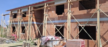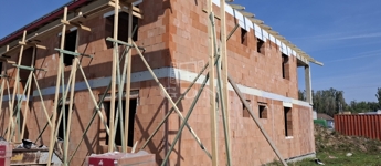 Az otthon beton alapra, 30-as síkra csiszolt tégla falazattal, monolit beton födémmel, beton cserép fedéssel épül meg.