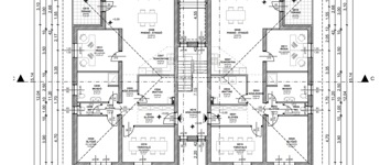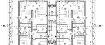 A lakásokat zárt lépcsőházból érjük el, a földszinten két lakás, az emeleten két iroda kerül kialakításra.
