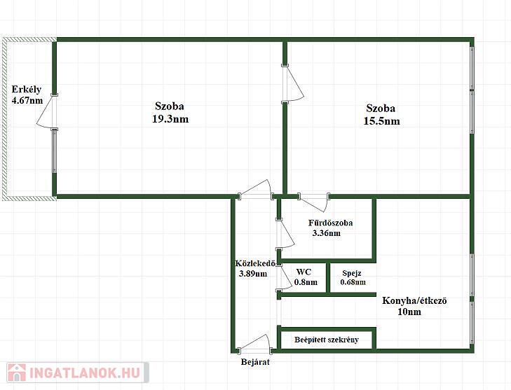 A lakás praktikus elosztású: előszoba, két külön nyíló szoba, konyha étkezőrésszel, fürdőszoba és külön WC szolgálja a kényelmet, továbbá tartozik hozzá egy hangulatos erkély is, amely ideális helyszín lehet egy reggeli kávéhoz vagy esti pihenéshez.