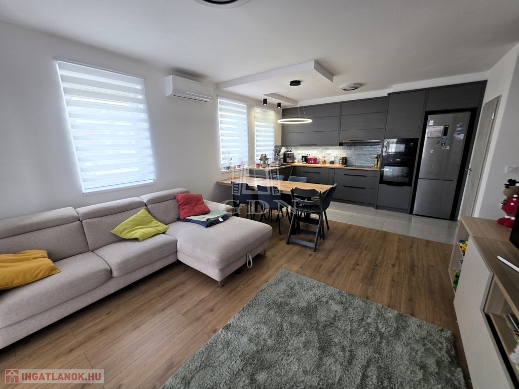 - A tágas nappali–amerikai konyhás tér a lakás valódi központja, amely gépesített konyhával várja új tulajdonosát – tökéletes helyszín a mindennapokra és a vendéglátásra egyaránt.