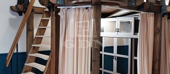Az ebédlőből lépünk a 25 nm-es utcai kilátással rendelkező szobába. A szoba életterét növeli a látványos- különlegesen megmunkált épített 6 nm-es álló galéria.
