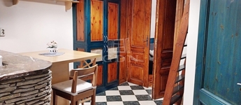 A szoba burkolata vörös fenyő, a konyha, fürdőszoba a lakás hangulatához alkalmazkodó járólap burkolatot kapott.