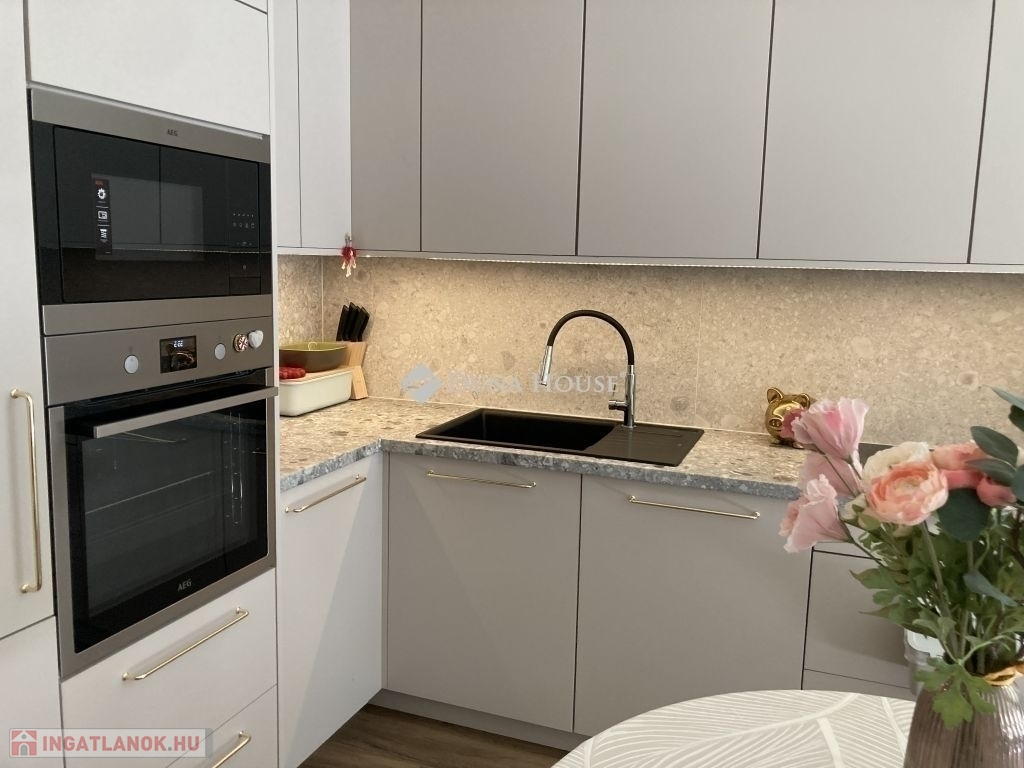 Saját garázs és tároló, valamint kertkapcsolat. A lakás minden részletében a tudatos tervezés köszön vissza: nemcsak szép, hanem élhető, logikus és hosszú távra is kényelmes otthon.