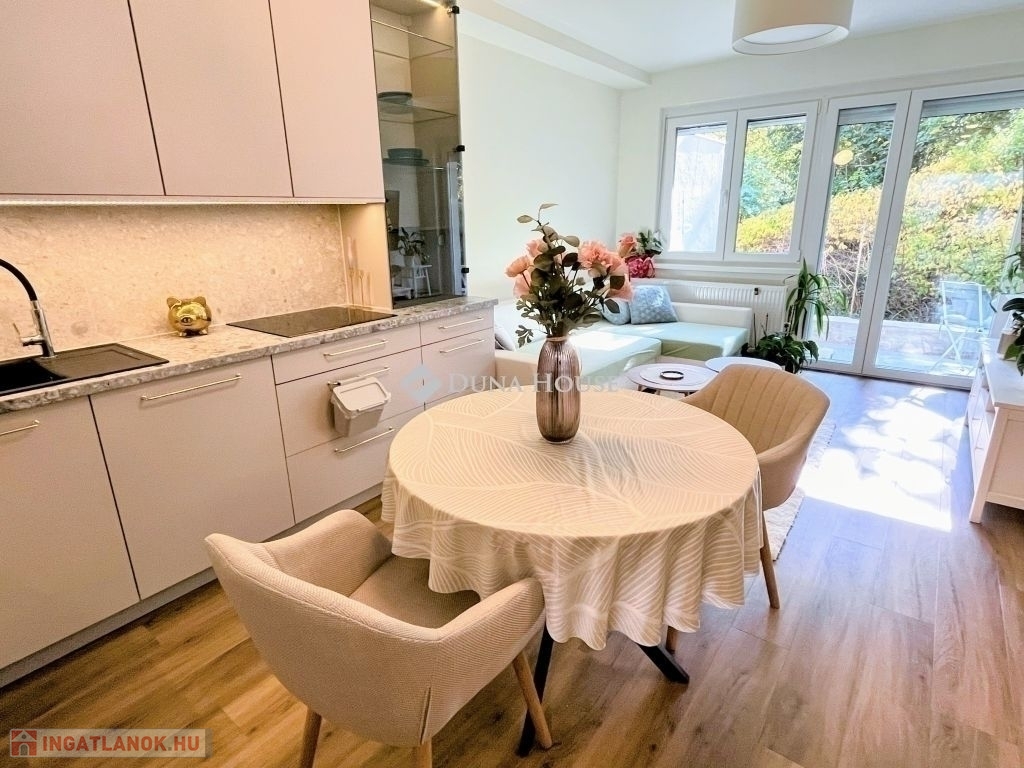 A 60 m²-es (tulajdoni lapon 66 m²) otthon napfényes, déli fekvésű kertre néző terekkel és intim, saját terasszal rendelkezik, ahol nincs belátás csak a kert és a nyugalom.