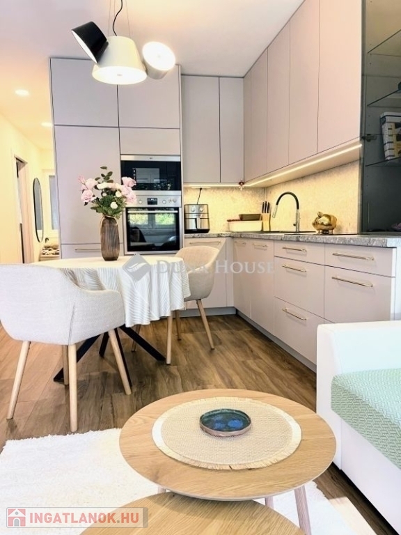 Eladó egy minden részletében megtervezett, építész és belsőépítész által tervezett, teljes körűen felújított, földszinti (lépcsőzés nélküli) lakás a II. kerület Kurucles városrészében, Pasarét-Virányos határán, csendes, rendezett környezetben.