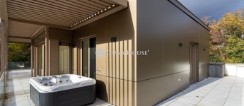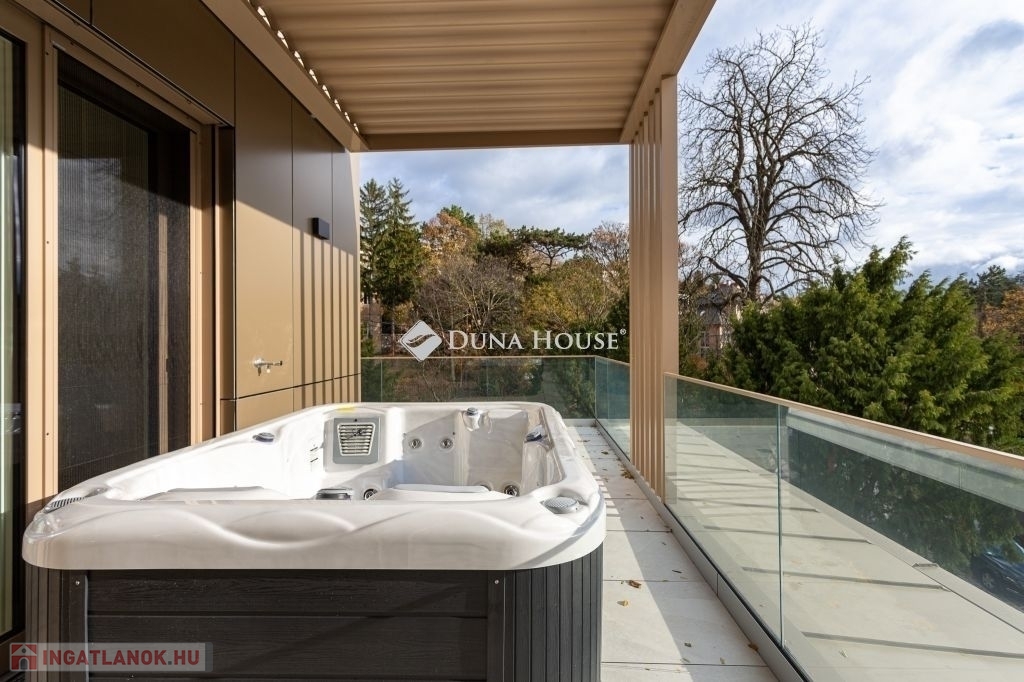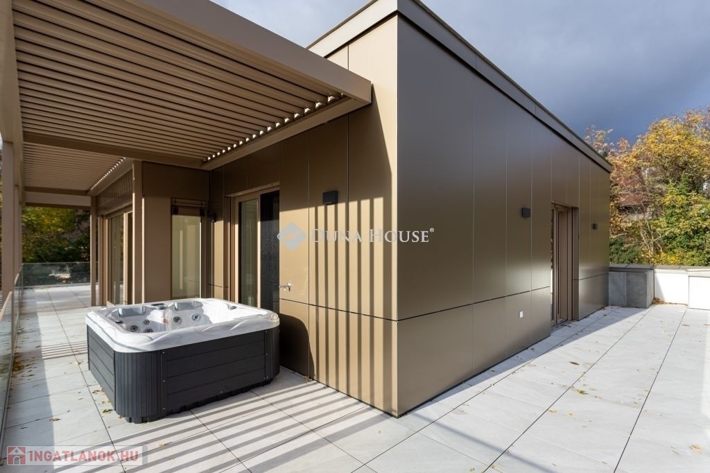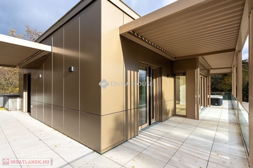 A dús növényzettel teli, 2234 m2-es telekre épült 3 szintes ingatlan a városi kényelem és a természetközeli élet ideális kombinációját kínálja. A tervezés során kiemelten ügyeltek a privát terekre. Nagy figyelmet kapott a praktikusság, a tágas élettér és a kényelmes, jól kihasználható teraszok kialakítása, melyek alapterületének arányos része a megadott összterületbe is beleszámít. A teraszok jacuzzival és pergolával felszereltek. Kertkapcsolat a földszinten, zöld lombkoronás kilátás az emeleten, és lélegzetelállító panoráma a PENTHOUSE-ból - mindez elegáns, prémium kivitelben.