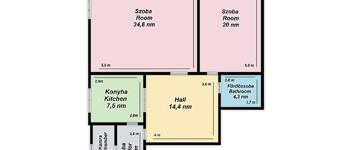 Az ingatlan praktikus alaprajzzal rendelkezik: a két tágas szoba mellett egy külön hall is található, amely étkezőként vagy dolgozósarokként is használható. Az déli-nyugati fekvésnek köszönhetően a lakás kellemesen világos, a délutáni órákban különösen szép fényviszonyokkal.