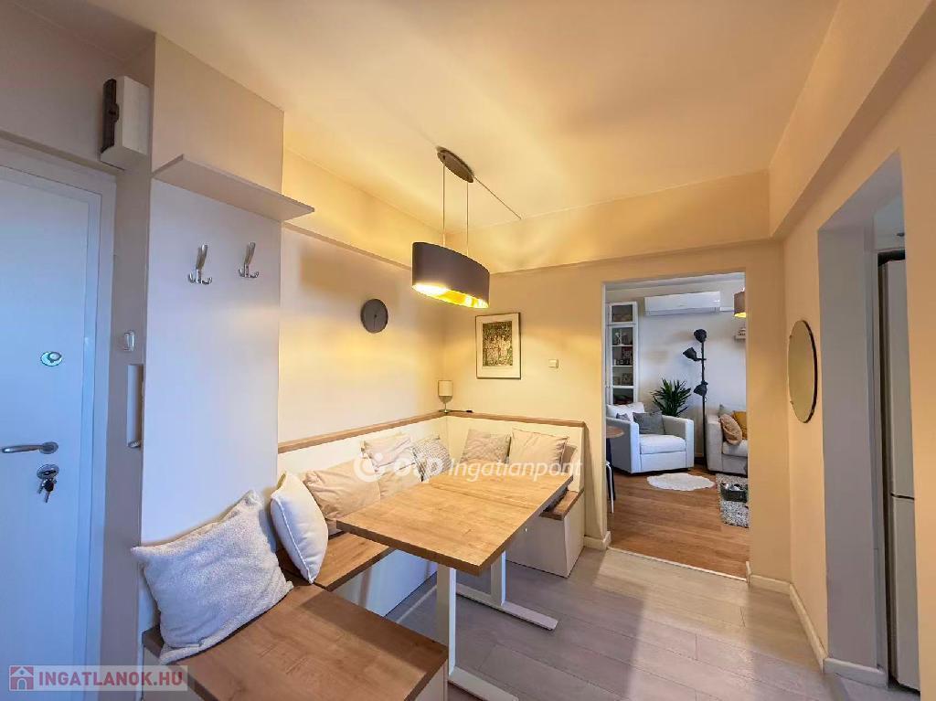 A délnyugati tájolású, rendkívül napfényes otthon 1980-ban épült, belmagassága 2,6 méter, helyiségei kellemesen tágasak és praktikusan kialakítottak. A lakásban beépített konyhabútor, légkondicionáló és redőny is található, a fűtés távfűtéses, a rezsit pedig a két vízóra és a mindössze 13.000 Ft-os közös költség teszi kedvezővé. A ház előtt a parkolás közterületen ingyenes, a környék infrastrukturális ellátottsága pedig kiemelkedő: üzletek, tömegközlekedés, iskolák és a Duna-part egyaránt gyorsan elérhetők. A lakás berendezései igény szerint, megállapodás alapján maradhatnak, így ideális választás mindazoknak, akik gondozott, modern, bútorozott otthont keresnek Óbuda egyik legkedveltebb részén, akár saját célra, akár befektetésre.