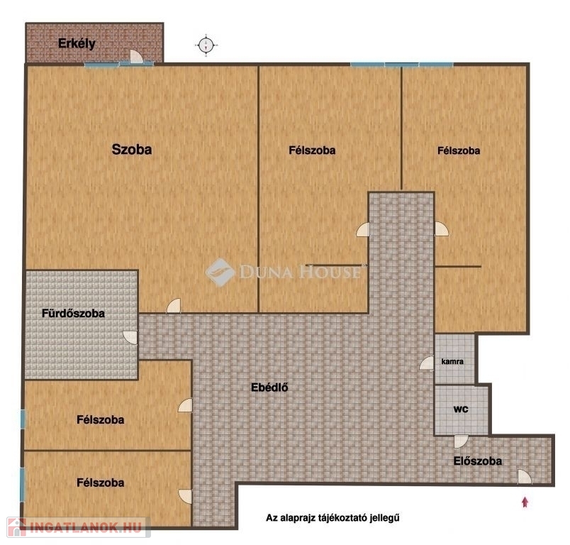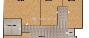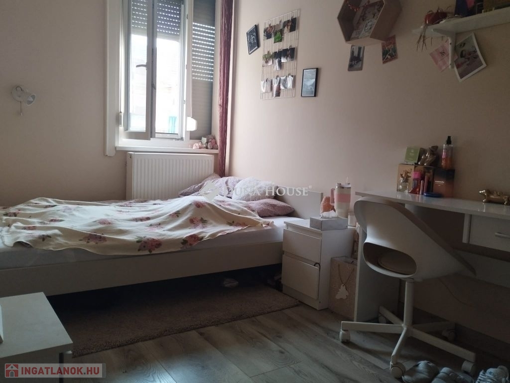 Az ingatlan jelenleg kiváló elrendezésű: 3 szoba + 2 félszoba, tágas étkezős konyha, kamra és egy kényelmes, sarokkádas fürdőszoba alkotja.