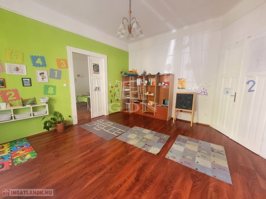 A 107 négyzetméter alapterületű ingatlan, hatalmas nappalijával és a 3 nagyméretű szobájával jelenleg iskolaként funkcionál.
