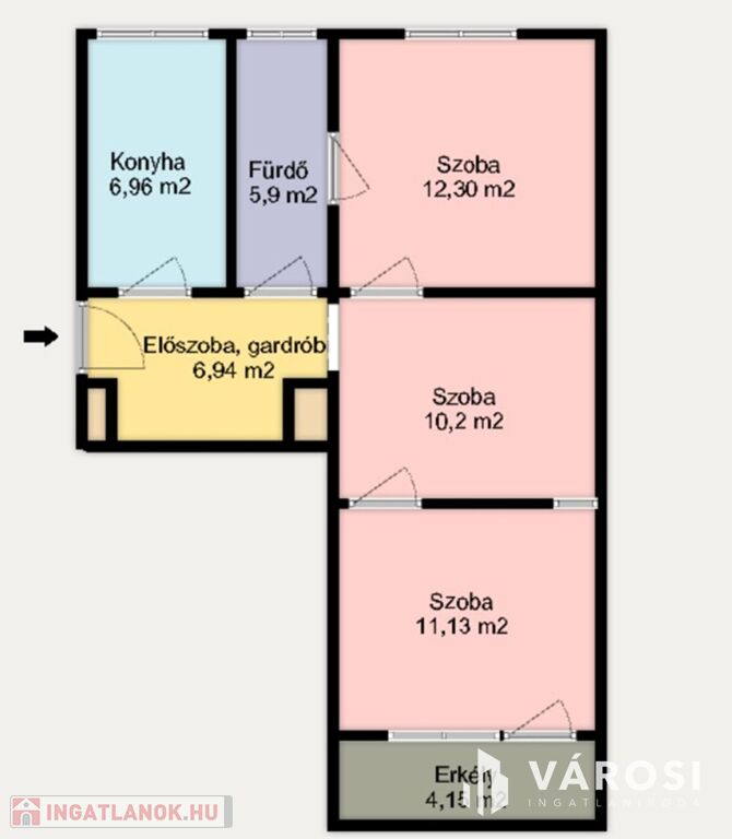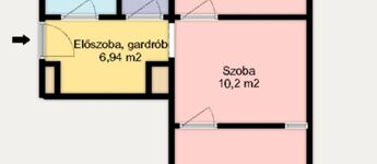 Az ingatlan a tulajdoni lap szerint kétszobás, de három szobássá lett alakítva, amely elrendezést a csatolt alaprajzon megtekinthet.
