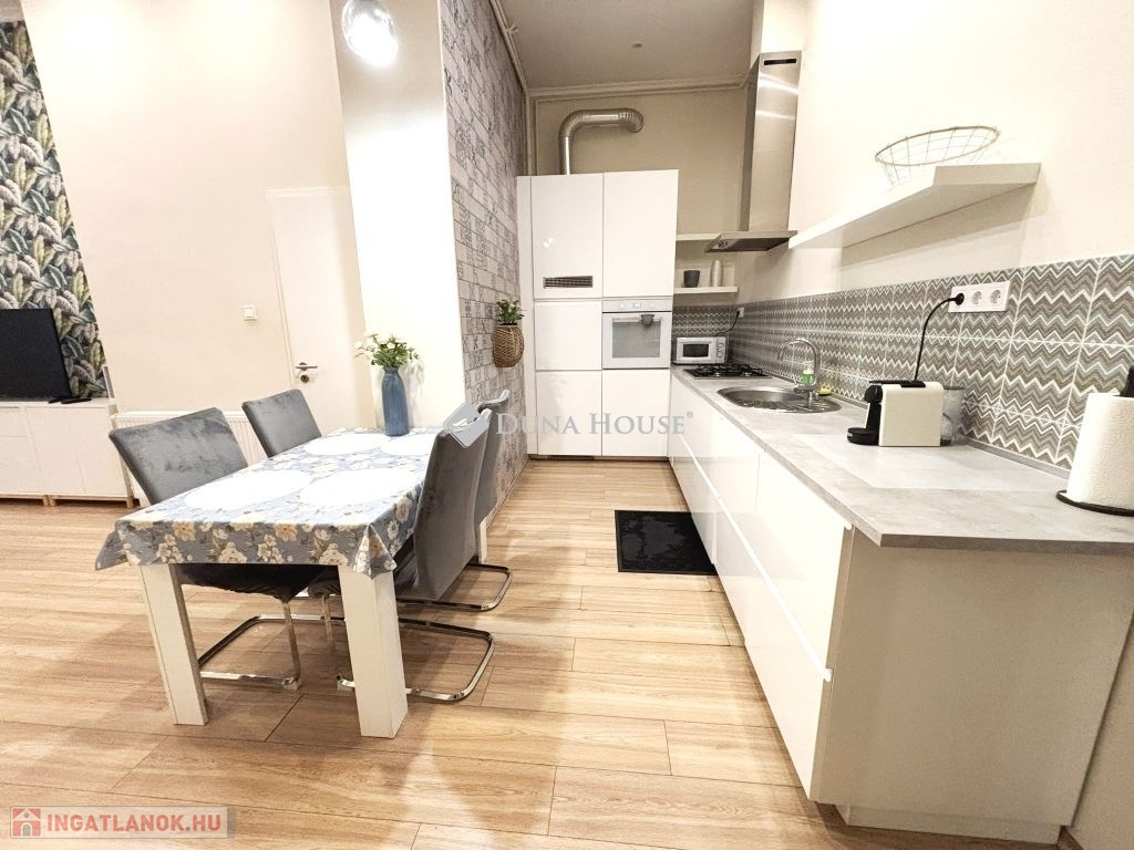 74 nm alapterületű, nappali + 2 hálószobás lakás, ami 2018-ban teljeskörű felújításon esett át, akkor nyerte el jelenlegi formáját, elrendezését, igényes burkolatokkal, beépített konyhai gépekkel. Ez a gyönyörű lakás nem csak a kivételes elhelyezkedésével, hanem a modern kialakításával, gazdaságos gáz cirkó fűtési rendszerével és a klimatizált nappalival is kitűnik.