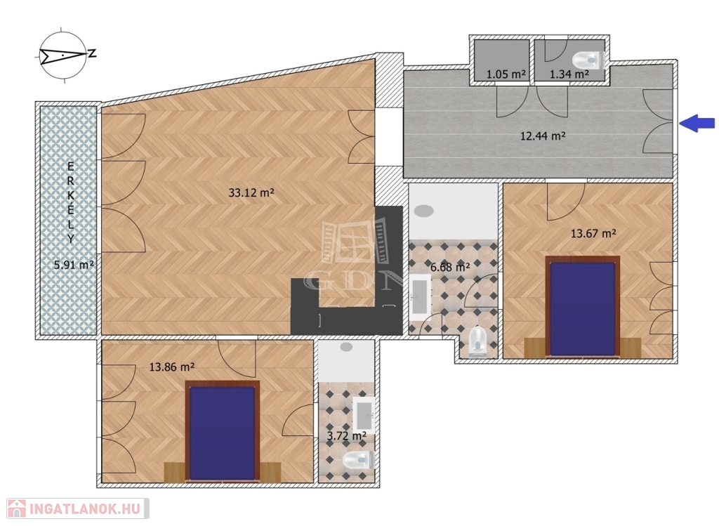 Kiemelkedő tömegközlekedés: M3, M4 metrók, buszok, villamosok pár perc alatt elérhetők.