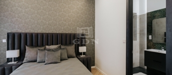 The street-facing apartment features a 6 sqm balcony with a direct view of the newly restored Klotild Palace, soon to reopen as one of Budapest’s most exclusive luxury hotels.