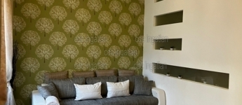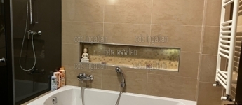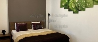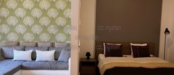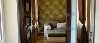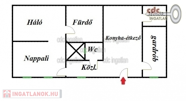 A félszoba jelenleg gardróbként működik, a hálórészt a nappali leválsztott részében alakították ki és onnan nyílik a kádas-zuhanyzós fürdő is.