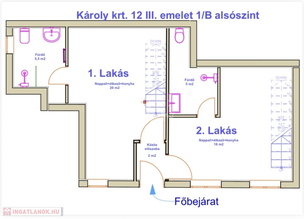 • Alsó szint: 18 m²