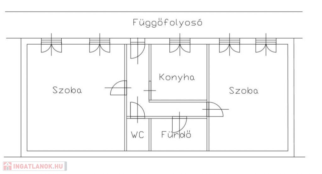 Az ingatlan áttekinthető elrendezésű: külön konyha (8 m²), két nagyméretű szoba (24 m² és 21 m²), valamint külön fürdőszoba és WC