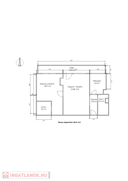 A második emeleti, 60 m²-es ingatlan átgondolt elrendezéssel rendelkezik: két teljes értékű szoba és egy félszoba, valamint két külön fürdőszoba és WC biztosítja a kényelmet – ideális választás pároknak, családoknak vagy hosszú távú bérbeadásra.
