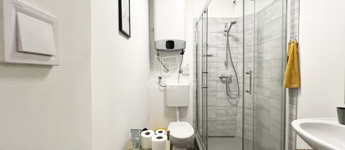 A kisebb szobából közelíthető meg a hátsó fürdő, melyben a melegvizet villanybojler biztosítja. A nyári melegben a klíma gondoskodik a kellemes hőmérsékletről.