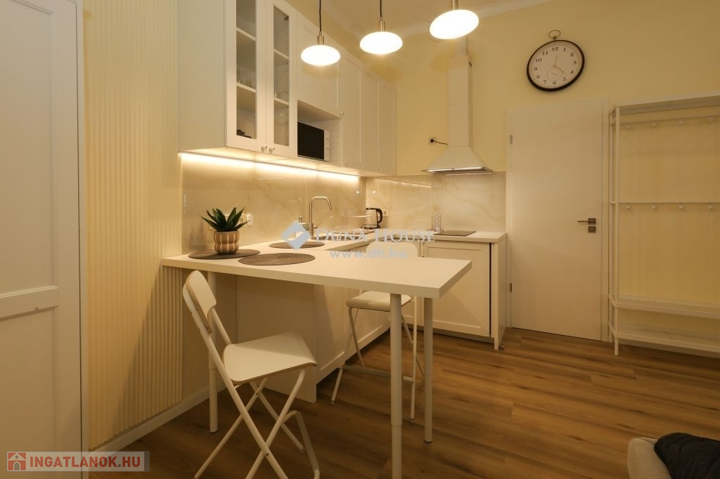teljesen berendezett apartman a Csarnoknegyedben, a Bérkocsis utcában, egy klasszikus épület első emeletén. Főbb jellemzők: 2024-ben teljes körű felújítás – modern gépészet, prémium anyaghasználat 380 cm-es belmagasság – tágas, világos terek Elegáns, minimalista dizájn – letisztult vonalak, minőségi bútorok Részben utcára, részben udvarra néző ablakok – csend és kilátás egyszerre Teljesen bútorozott és gépesített – Jelenleg is rövid-távú kiadással hasznosítottA környék kiemelkedő infrastruktúrával rendelkezik: kávézók, éttermek, egyetemek és közlekedési csomópontok pár perc sétára.Befektetésnek is tökéletes választás!