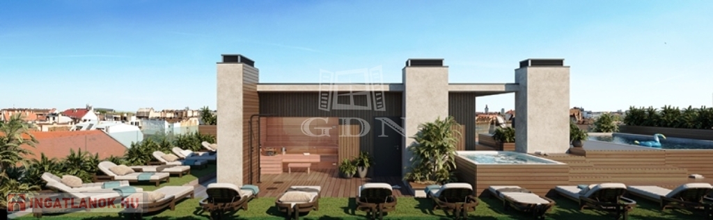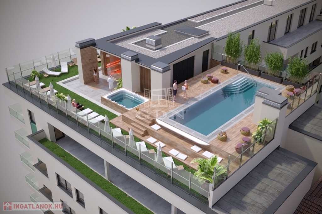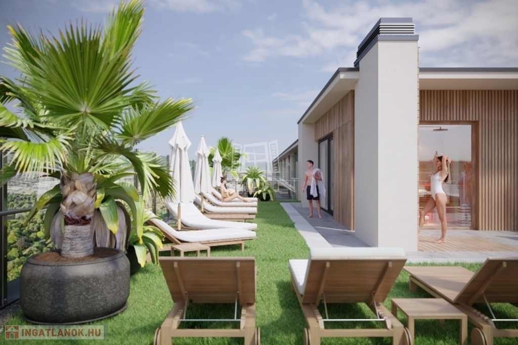 A 104 lakásos, liftes társas házat kiválóan kialakított modern lakások és belső terek jellemzik. A lakások a legmodernebb műszaki felszereltséggel rendelkeznek. Az ingatlan értékét a 0-24 portaszolgálat és a környéken egyedülálló tetőtéri wellness kényelmi szolgáltatások is növelik. A tetőn kialakított, kizárólag a lakók számára használható medence, szauna, jakuzzi és panoráma terasz biztosítja, hogy elmerülhessen a nyugalom szigetében anélkül, hogy el kellene hagynia otthonát. Kiváló elhelyezkedése és a minőségi kivitelezés hozzájárul, hogy befektetőként értékálló lakást vásároljon. A lakóparkban lehetőség van airbnb és hosszú távú bérbeadásra. Ha pedig saját otthonnak vásárolja, akkor biztosított generációkon keresztül értékállósága. A lakás igény szerint berendezéssel megvásárolható.