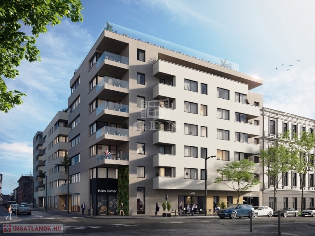 BUDAPEST VIII. kerület fejlődő részén, a Corvin Negyed közelében, az ÚJ ÉPÍTÉSŰ KŐRIS CORNER lakóparkban, 63m2 alapterületű, 2 szobás, 7m2 terasszal, duplakomforttal, tetőtéri medencével és wellness részleggel, 0-24 órás portaszolgálattal rendelkező, azonnal birtokba vehető lakás ELADÓ.