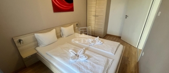 Közvetlen mellette egy szintén tágas, napfényes amerikai-konyha-nappalis, 1 hálószobás összkomfortos 37 m2-es lakás is eladó 64,9 M Ft-t.