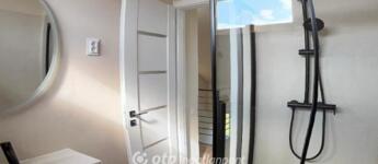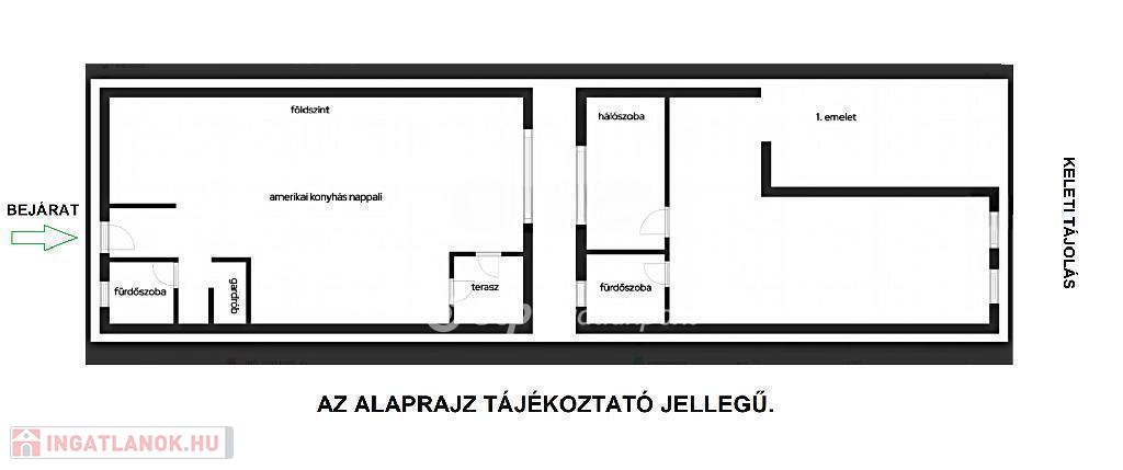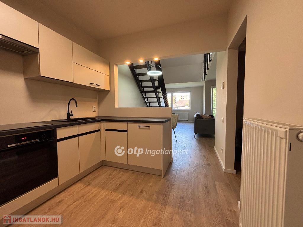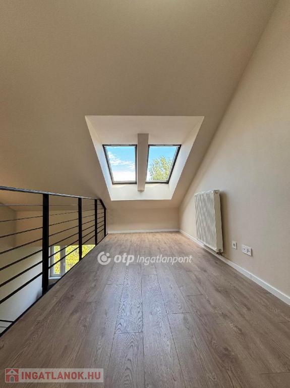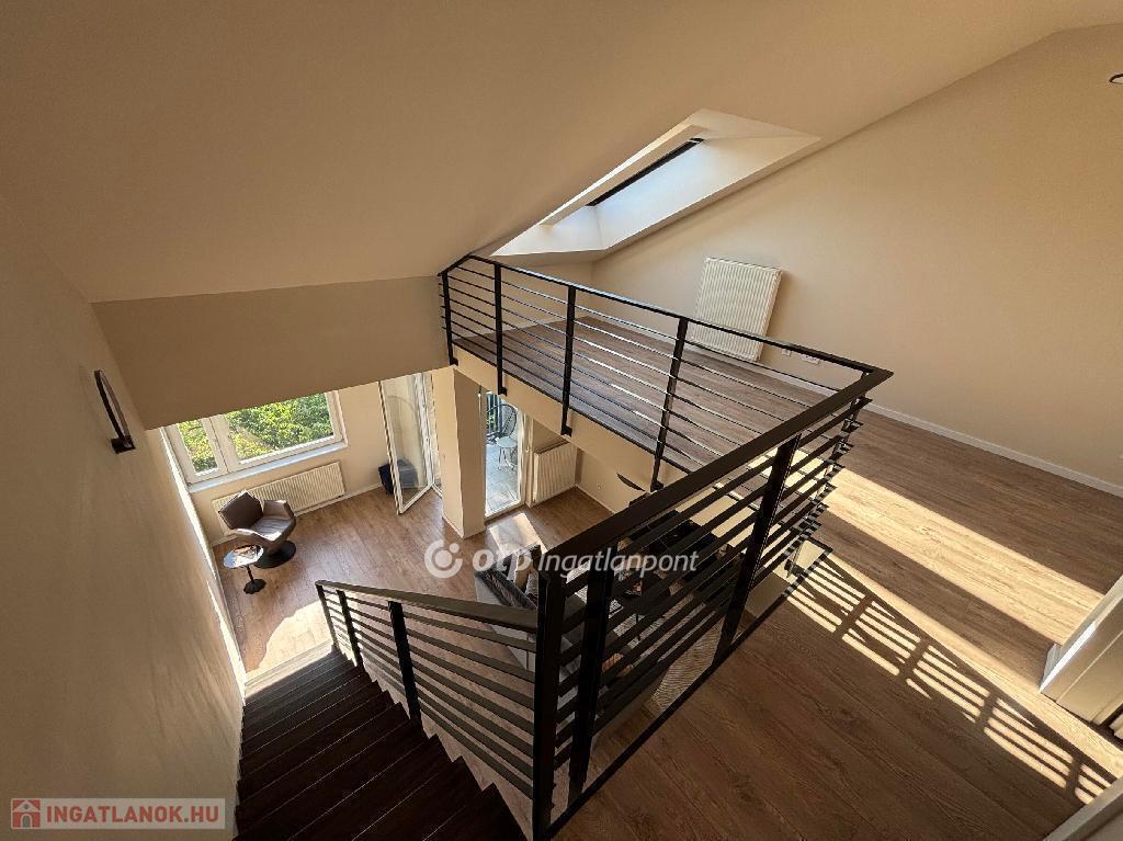A lakás gyakorlatilag egyben van. Hatalmas belmagasság, hatalmas tér. Terasza és amerikai konyhás nappalijának ablaka az udvari fák koronáira néznek. Nincs szükség függönyökre, nem lehet belátni. Keleti fekvése miatt az egész lakás kora délutánig úszik a napfényben, délután a nyugati oldal ablakai miatt világos. A képek kíválóan visszaadják a lakás fiatalos elosztását. A földszinten amerikai konyhás nappali, gardrób, kádas fürdőszoba WC-vel, 4 négyzetméteres terasz van. Az emeleten hálószoba, tusolós fürdőszoba WC-vel, illetve egy nappalinak avagy hálónak használható tér, egy légtérben a földszinttel. A képeken látható bútorok alku tárgyát képezhetik.