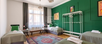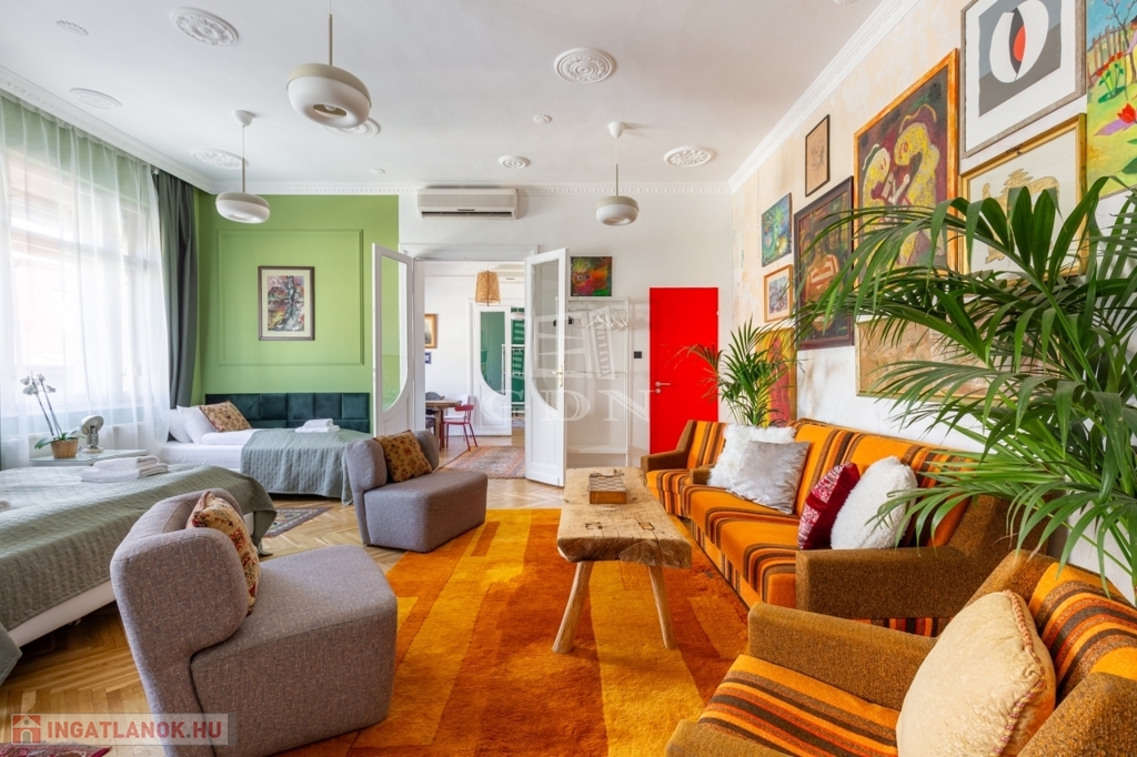 Budapest egyik legszebb belvárosi részén, a patinás Palotanegyedben, a Blaha Lujza tér közelében kínálunk megvételre egy 214 m²-es, felújított polgári ingatlant, amely ideális választás lehet nagyobb családok számára is. A lakás nagyvonalú terekkel, 3,1 méteres belmagassággal rendelkezik, és délkeleti fekvésének köszönhetően egész nap világos. Az 5 különálló szoba és 5 fürdőszoba kényelmes együttélést biztosít akár több generáció számára is, miközben minden családtagnak megmarad a saját privát tere. A 2023-ban elvégzett teljes körű felújítás (elektromos és vízvezetékek, fűtés) gondtalan beköltözést tesz lehetővé. Az ingatlan jelenlegi elrendezése rugalmasan alakítható, könnyedén klasszikus családi otthonná varázsolható.