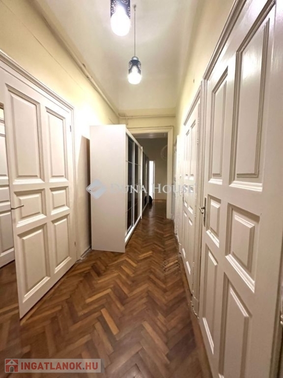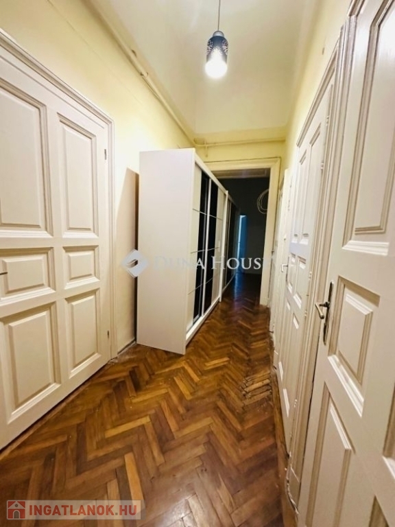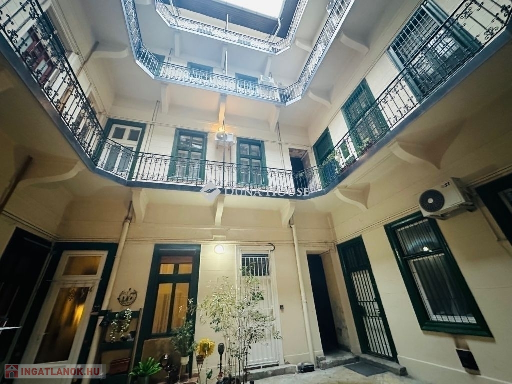 M4 metró közeli, lehetőségekben gazdag lakást kínálok megvételre a 8. kerület, II. János Pál pápa tér közeli, barátságos társasházban. A ház belső udvara mesébe illő belvárosi bérház hangulatot tükröz. A lakóközösség elérte, hogy a belső homlokzat átessen a felújításon, így igazán bájos környezetből nyílik ez a magasföldszinti ingatlan.Az ingatlan 76 m²-es , magasföldszinti, és akár két bejárat is kialakítható (jelenleg egy van, de a konyhánál adott még egy ajtó nyitása.Irodának, rendelőnek is tökéletes választás a lokáció és a társasházban való elhelyezkedése miatt.A lakás alatt egy szuterén helyiség van, melyet raktározásra használnak. Az ingatlan száraz!A lakás bútorozott és gépesített, költözhető állapotú ingatlan.Ablakai nagy része utcára néznek, műanyag nyílás zárók.3 külön nyíló szobás (2 egész és 1 fél) és egy külön nyíló étkezős konyha is rendelkezésünkre áll. Az két szoba is galériázott, melyek álló galériák.Jelenleg egy fürdőszoba van külön toalettel, de dupla komfort is megoldható, mert a wc mellett találunk egy tágas kamra helyiséget, mely beáldozható a 2. fürdőszoba kialakításához.Van egy hatalmas előszobánk, mely gardrób is jelenleg, de akár a konyhának is helyet tud biztosítani, amennyiben a konyhából szeretne kialakítani még egy hálószobát.A lakás belmagassága több, mint 4 méter, így aki duplex lakásban gondolkozik, itt valóra válthatja! Ez esetben a rengeteg szoba kialakítható az ingatlanban, akár 8 szoba is!Amennyiben maradunk az egy szintes verzióban, akkor a 4 külön nyíló szobát javasolnám kialakítani.Mindezt csak azért vázolom fel, mert az Egyetemek is közel vannak, pár villamos-, vagy metró megállónyira.Amennyiben saját célra vásárol, akkor egy 4-5 fős kisgyermekes család is kényelmesen el tud férni.A nyílászárók ki lettek cserélve kivéve egy-két kis ablakot, ami lichthofra néz. A bejárati ajtó is új típusú, hang és hőszigetelt.A lakás vizes blokkjai rendben vannak, pár éve lettek felújítva.A villanyhálózat felújított. 25 Amperes.Burkolatok, falak rendezettek. Ami az eredetihez nagyon hasonló állapotot tükröz, az a parketta. Ezt már az új tulajdonosra bízzuk, mit kezd vele.A konyha jól bútorozott, gépesített.A belső nyílászárók eredetiek, nagypolgári hangulatban úsztatják ezt a tágas, jó elosztású otthont.A fűtés jelenleg konvektorral megoldott és a meleg vizet átfolyós vízmelegítő biztosítja.Amennyiben nem gáz párti, akkor ezek kiválthatóak hűtő-fűtő klímával és egy jó ECO villanybojlerrel. A villanyhálózat 25 Amperes.A tömegközlekedés nagyon jó, a M4 2 percre található. A Rákóczi út 3 perc séta, a József és Erzsébet körút 10 perc séta és a Keleti Pályaudvar is.Az utca nem nagy forgalmú, csendesebb része a lokációnak és még parkolóhely is akad a ház előtt. Éjszaka csak a ott lakók parkolhatnak az utcában.Jó választás egyet befektetőknek, akik hasznot akarnak maximalizálni két lakással vagy egy 8 szobás duplex lakással.Jó választás nagyobb családnak, ahol szükség van 3-4 külön nyíló szobára.Jó választás egyetemistáknak az egyetemekhez közeli lakhatásra.