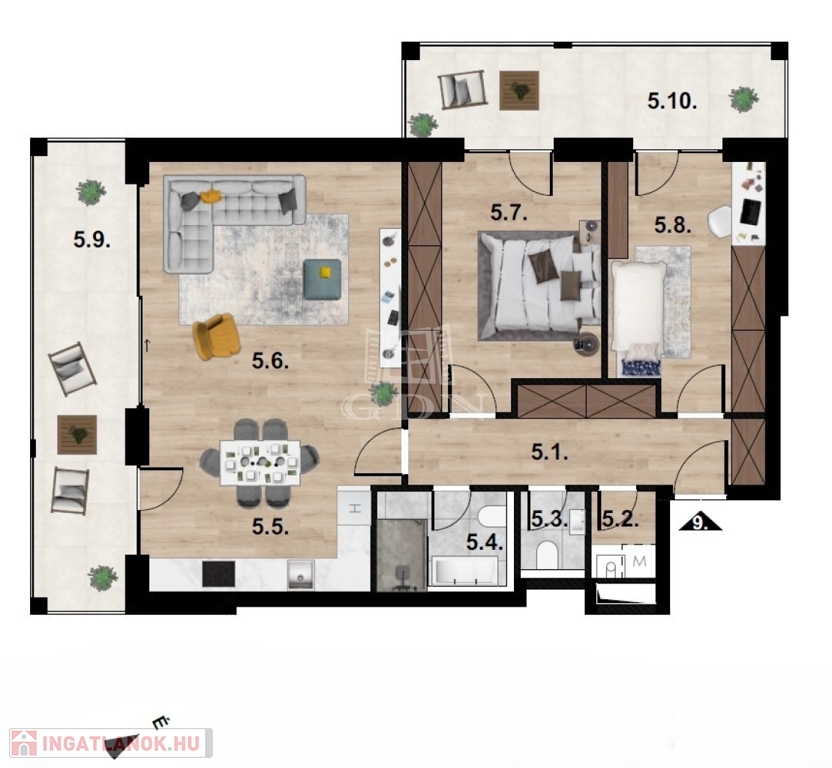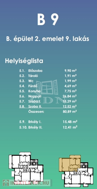 49, 54, 71, 80 nm2 méretű ingatlanok közül lehet választani. Földszinti lakások saját terasszal és kertrésszel míg az 1. és 2. emeleti lakások nagy teraszokkal rendelkeznek.