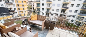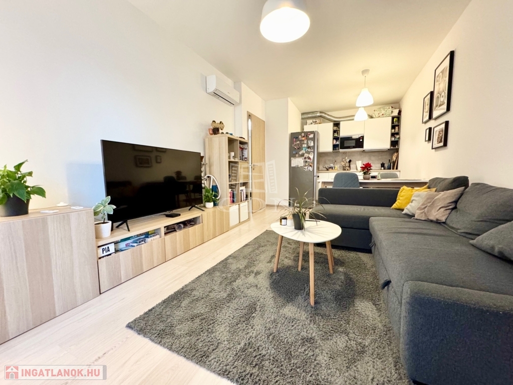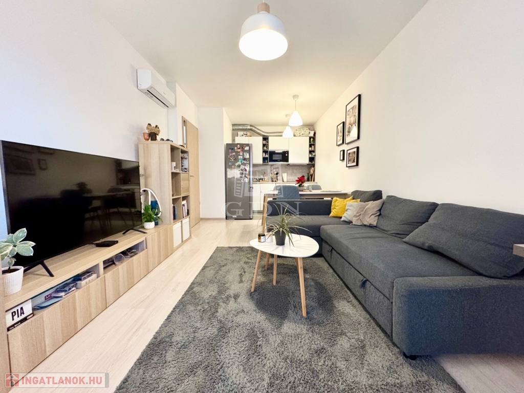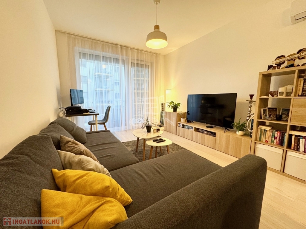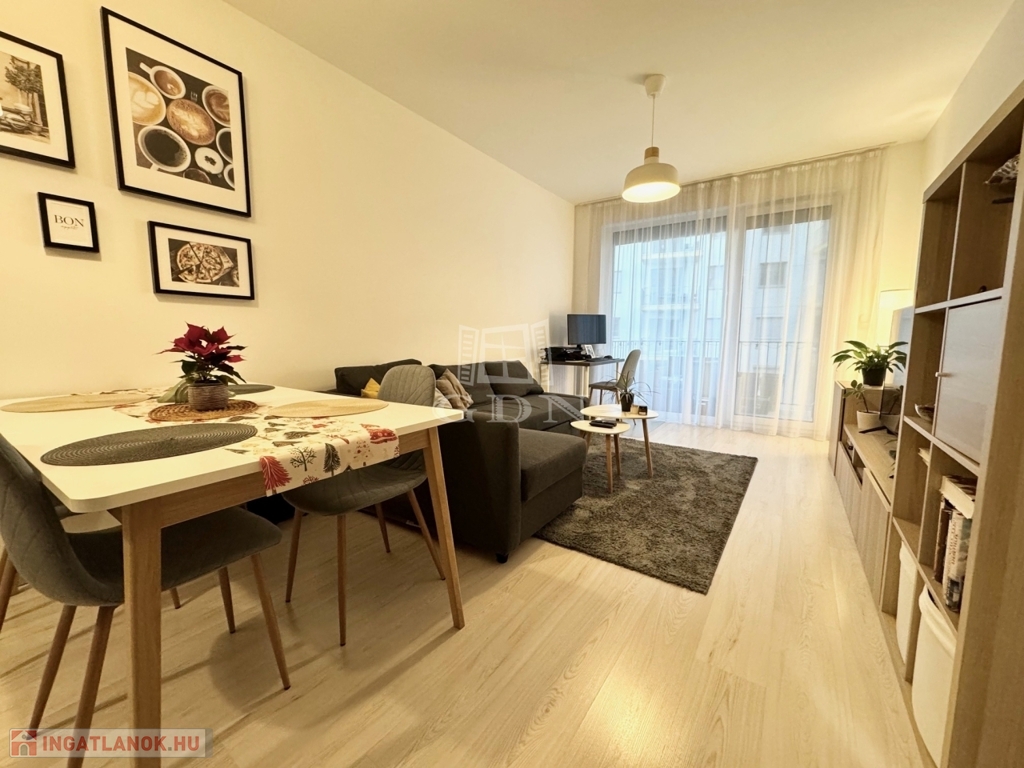 XIII. kerületben, a dinamikusan fejlődő, fiatalos, méltán népszerű, Angyalföldön, kiváló közlekedés és ellátottság mellett, a karnyújtásnyira a Göncz Árpád városközponttól és a Duna parttól, 2021-ben, magas műszaki színvonalon épült, exkluzív megjelenésű, saját parkkal, játszótérrel, közösségi térrel rendelkező újszerű állapotú, exkluzív megjelenésű dupla liftes társasházban, KIVÁLÓ ADOTTSÁGOKKAL BÍRÓ, 4. emeleti, 43 nm-es, 7 nm-es terasszal rendelkező, 2 szobás, amerikai konyhás, napos, világos fekvésű, csendes belső kertre néző, alacsony fenntartású, házközponti fűtésű, egyedi mérésű, újszerű állapotú, klimatizált, elektromos redőnyökkel szerelt, okos funkcióval ellátott, rugalmasan birtokba vehető, lakás, beépített, gépesített konyhával, igény esetén teremgarázs bérlési lehetőséggel, kulturált lakóközösségű házban eladó!