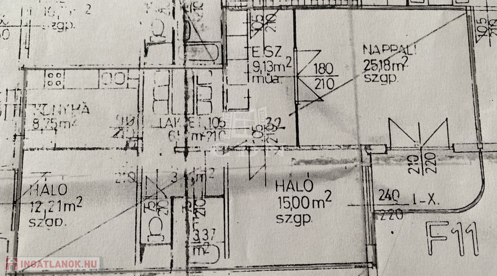 Nappali 25,18 m² | Hálók: 15 m² és 12,21 m² | Konyha 8,75 m² | Étkező 6,5 m² | Fürdő 3,37 m²