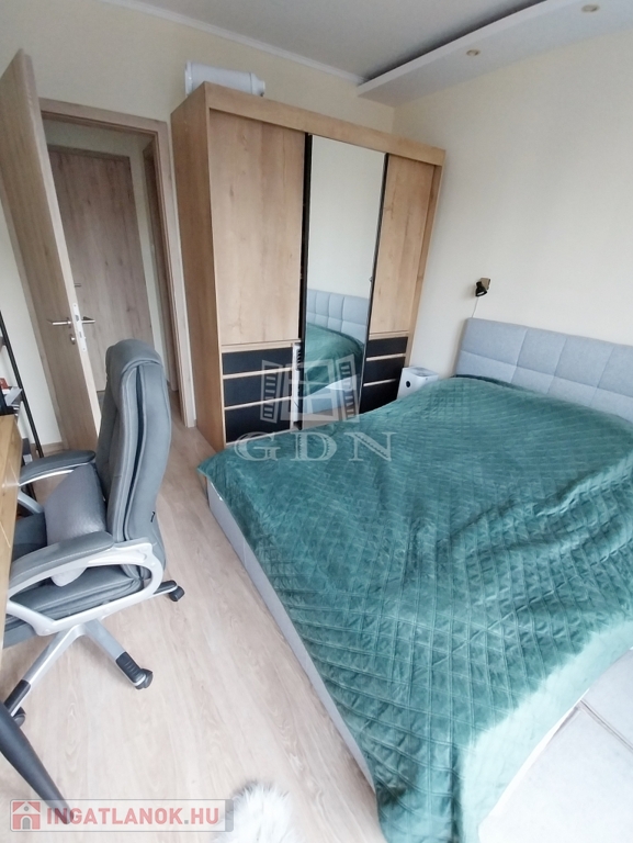 Ezenkívül még a franciaágy a mennyezetig beépített gardrób szekrény, nappali kanapé, dohányzó asztal szintén a vételárhoz tartozik.