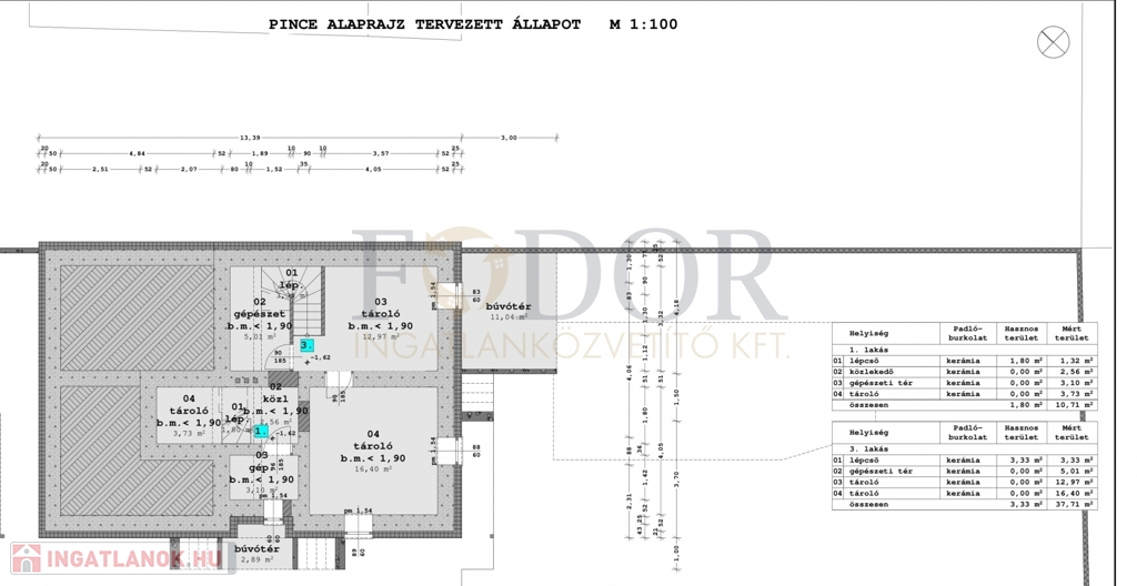 • Extrák: saját pincerész + lépcsőház + közlekedő + 2 db tároló (össz.: 37,71 m²)
